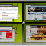Ubuntu 11.0 también tiene un nuevo administrador del área de trabajo, facilitándonos en trabajar con múltiples ventanas y aplicaciones, solo tenemos que hacer click en el ícono de Área de trabajo (Workspaces) en el lanzador y todas nuestras instancias activas se harán visibles, pudiendo transitar entre ellas de una manera muy sencilla y amistosa