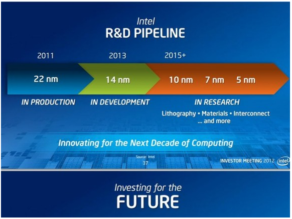 Al respecto, el CEO de Intel, Paul Otellini, afirma que Intel está en la capacidad de comenzar a fabricar estos nuevos chips mucho más rápido que la competencia gracias a que invierten cerca de 2 mil millones de dólares al año en investigación, además de tener empleados en la compañía a cerca de 1,900 especialista con grado de PhD, las cosas están tan avanzadas para la próxima generación de chips de 14nm que Intel ya tiene 3 locales en construcción los cuales parecen garantizar que los nuevos circuitos estén a tiempo para la fecha esperada en el 2013.