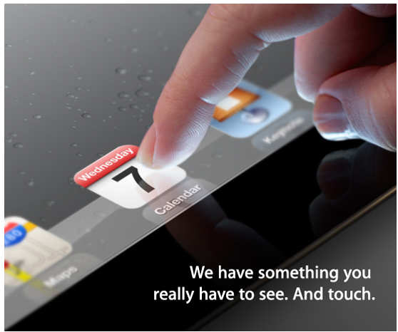 Apple ha programado un evento el día 7 de marzo que a todas luces, se trata de la presentación oficial del iPad 3 donde serán despejadas todas las dudas, esperaremos con ansias y seremos uno de los primeros en informar los detalles de la nueva tablet de la manzana.